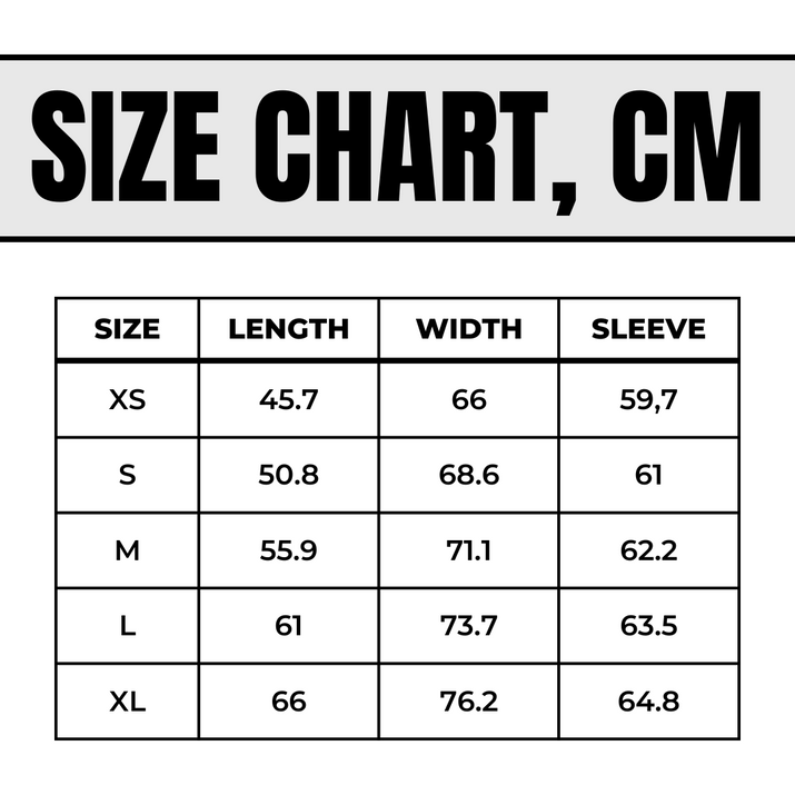 Answer 2: To choose the right size, refer to the size guide that includes measurements in both centimeters and inches for width, length, and sleeve length. Measure your own dimensions and compare them to the chart for the right fit. We reccomend getting a size larger, for a oversized look.